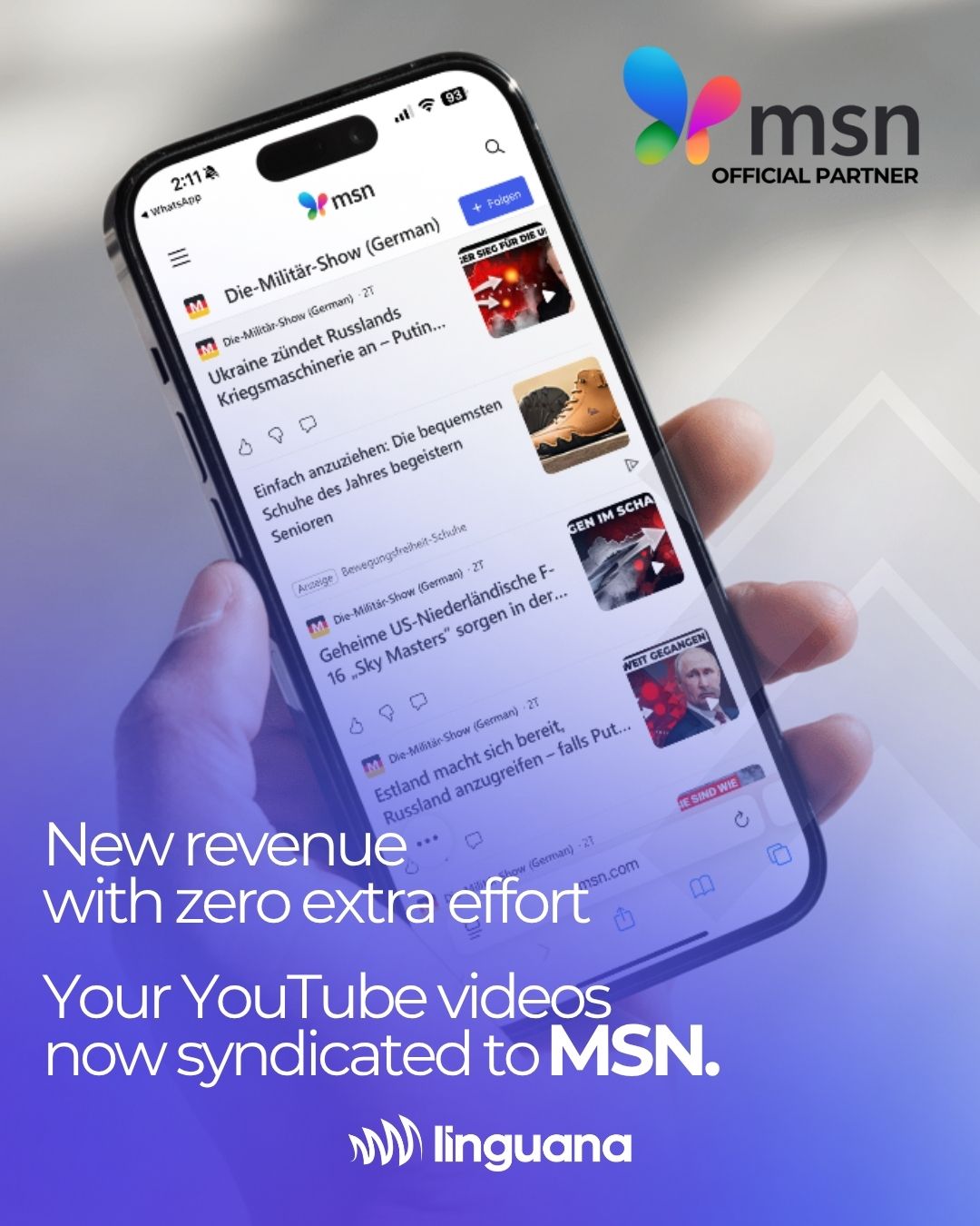 Linguana has evolved beyond localization into a global distribution and monetization partner. We scale your content across 40+ languages, distribute it on platforms like YouTube, MSN, and Spotify, and unlock additional revenue through AI-powered ads, all handled end-to-end, with zero cost, risk, or effort.
